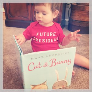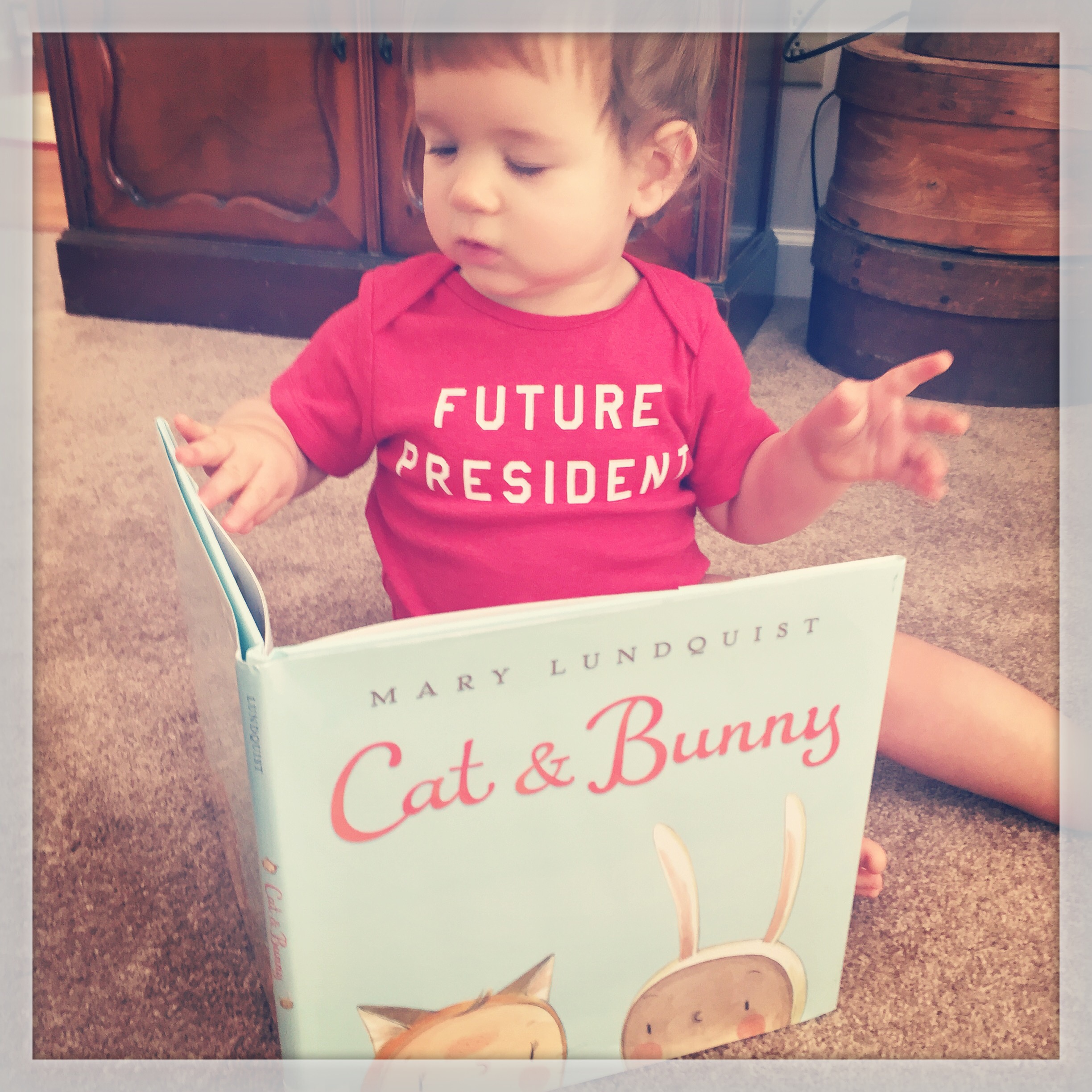Summer Reading Day 62: Our book today was Cat & Bunny, an adorable book about friendship by Mary Lundquist. Cat & Bunny are two little kids born on the same day, and grow up side by side to become best friends who do everything together. They have adventures and secret games that only the two of them know. Then one day, another child asks to join them, and they learn how having many friendships doesn’t make your best friendship any less special.
