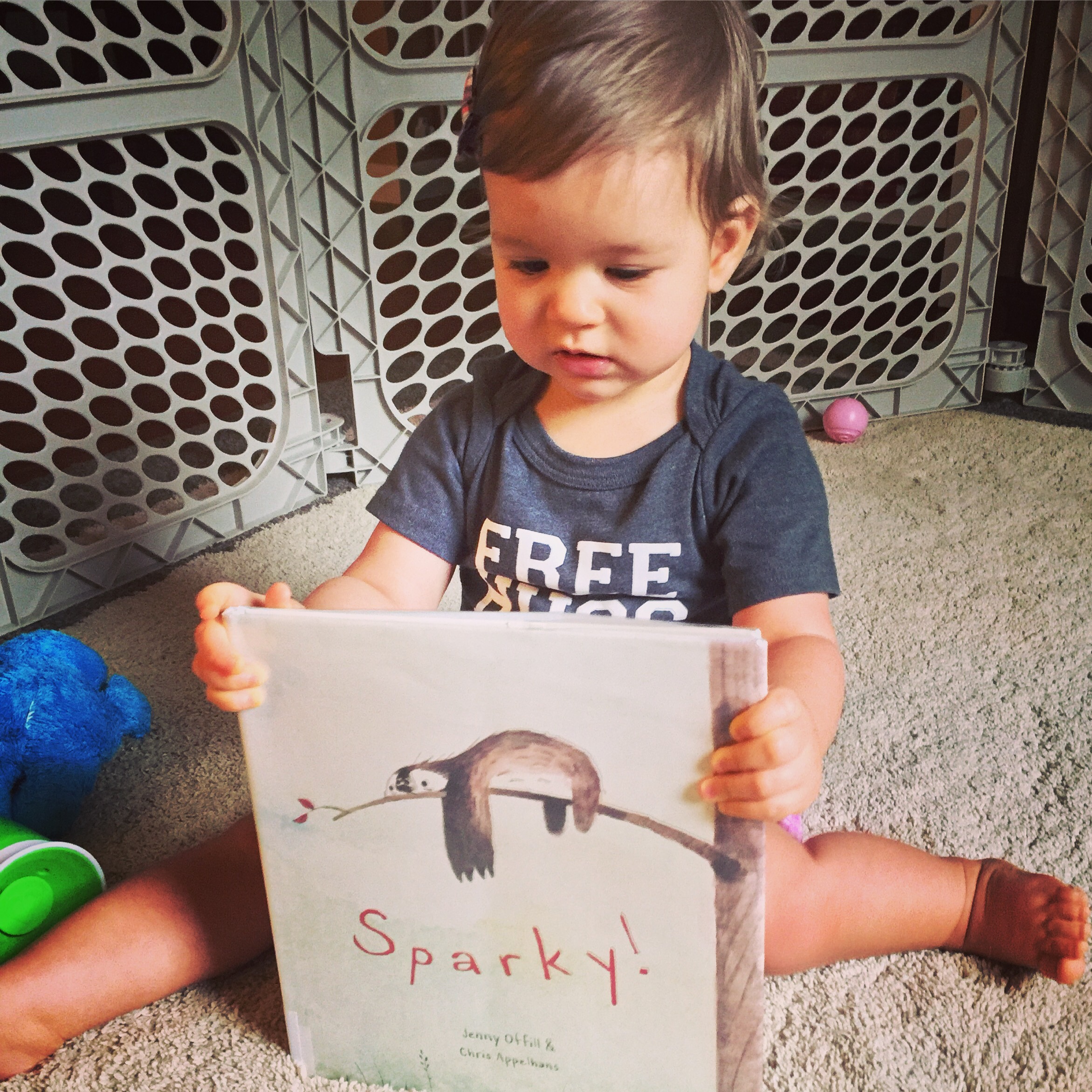 Summer Reading Day 89: Happy Friday, everyone! Our book today was Sparky! by Jenny Offill and Chris Appelhans, a book about a little girl and her pet sloth.