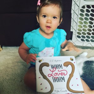 This. Book. I cannot describe how lovely it is. First, the illustrations are just adorable – the little insects, and especially the worms, are too cute for words. It’s a perfect length for baby bookworms, short enough even that JJ wanted to read it twice. The text is sweet and simple and fun to read.