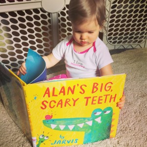 This was a really great book about bullying. The metaphor of bullies like Alan having a secret insecurity that makes them act scary is well-executed, and I love that the animals realized that by making fun of Alan’s secret, they become bullies themselves. It’s a great message wrapped in a cute, fun-to-read story and some exciting, colorful illustrations. The length was great for baby bookworms, and JJ really liked it! Baby Bookworm approved!
