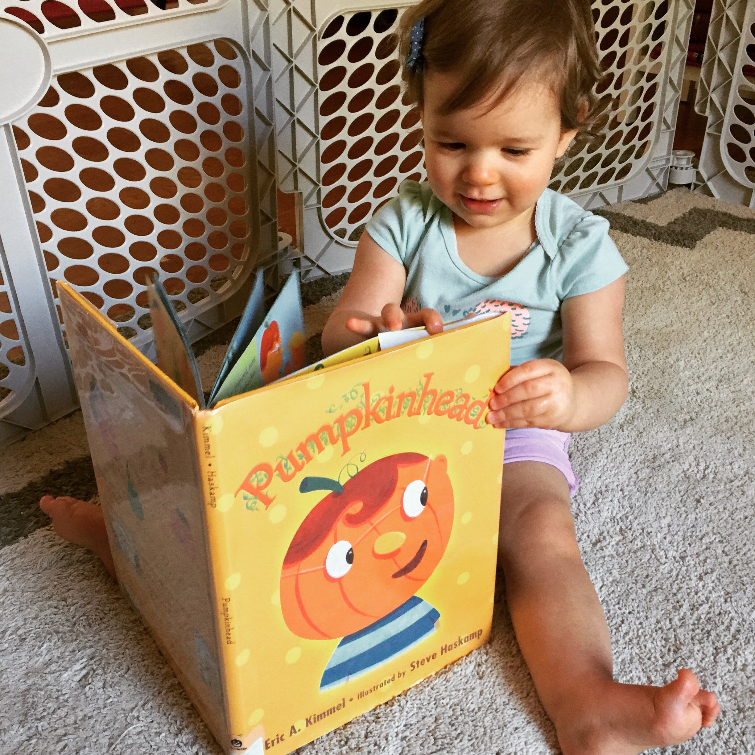 Halloween Week Day 1: Hello, friends. Welcome to Halloween Week! JJ and I will be reading a new Halloween-themed book every day this week, leading up to the 31st. For today’s book, we read Pumpkinhead, written by Eric A. Kimmel and illustrated by Steve Haskamp, the story of a curious little boy from an unusual village.