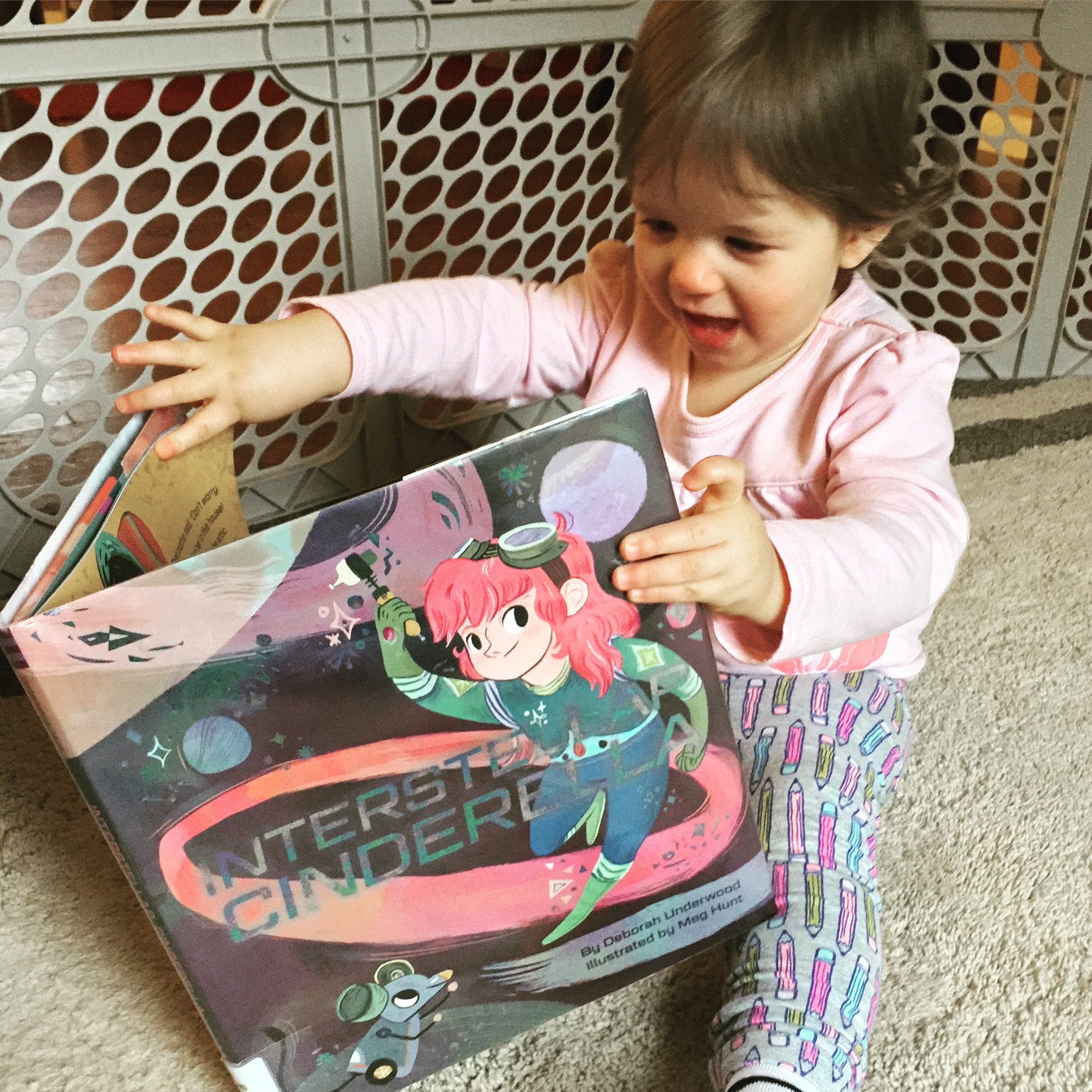 Hey there, everyone! Today’s book is an awesome girl-power twist on a classic children’s story: Interstellar Cinderella, written by Deborah Underwood and illustrated by Meg Hunt, a sci-fi spin on the Cinderella tale.