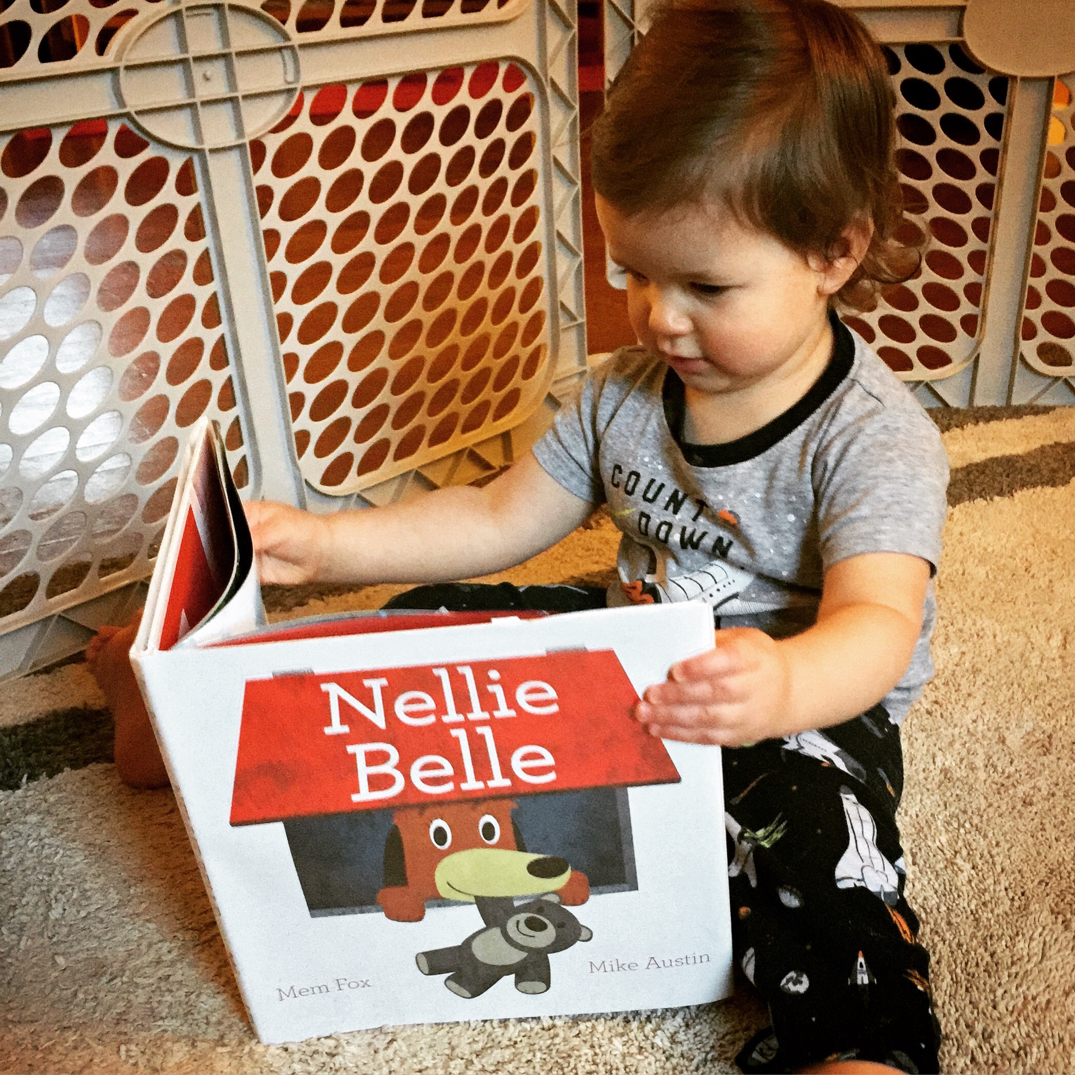 Hello, everyone! Today, we read the adorable book Nellie Belle by Mem Fox & Mike Austin, a singsong rhyming book about a playful little dog.