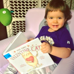 Happy Valentine’s Day, everyone! We spent the day playing with friends and reading a hilariously sweet book: Here Comes Valentine Cat, written by Deborah Underwood and illustrated by Claudia Rueda.