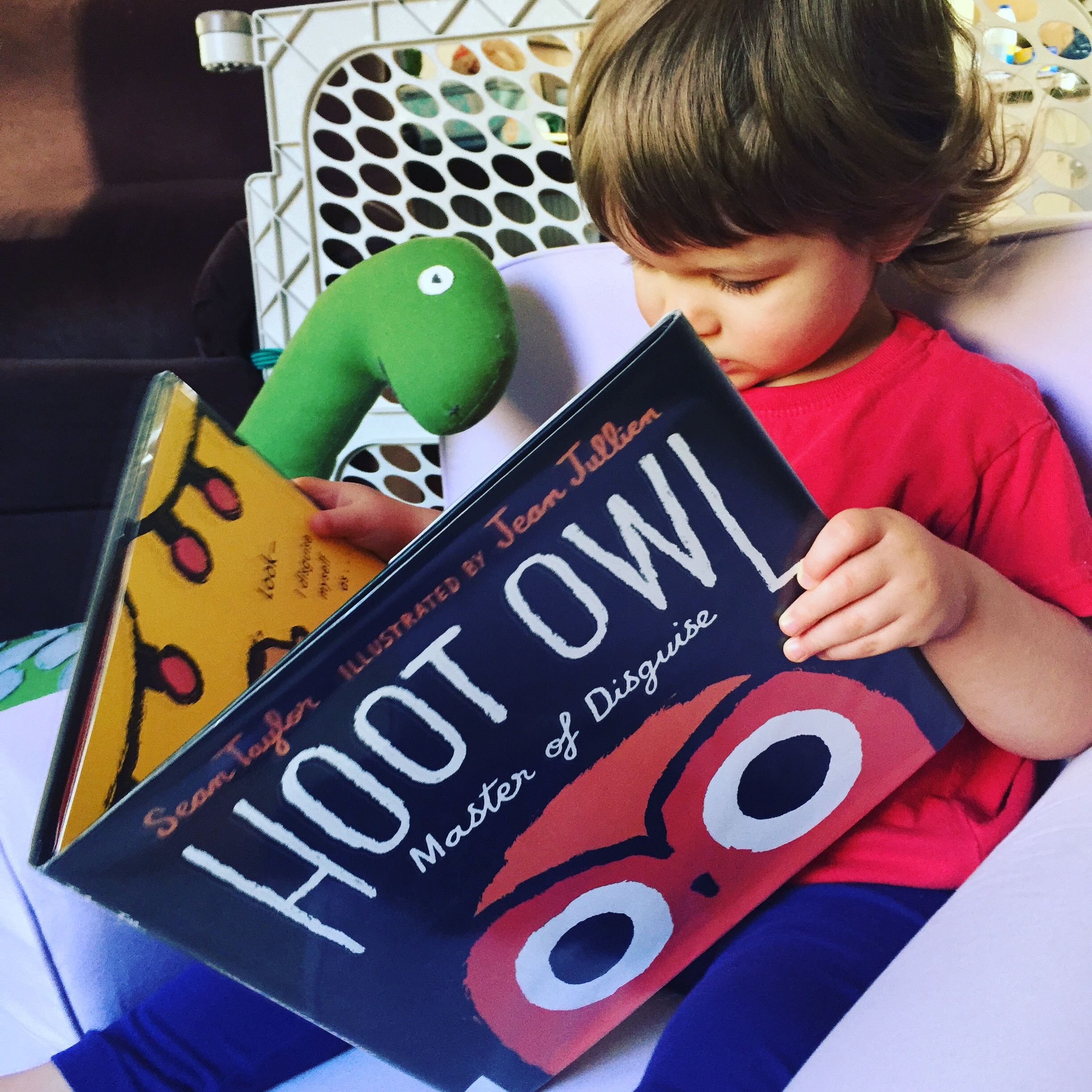 This was a great tongue-in-cheek book about a cluelessly hubristic owl, and it was a delight to read. As Owl’s prey, and his disguises, become more and more ridiculous, it’s easy to laugh along to his inflated sense of pride and overly-enigmatic self-descriptions. The art is just perfect for baby bookworms, with bright bold colors and thick outlines defining easily recognizable characters. The length is great, and JJ really enjoyed it, especially the art and Owl’s swaggering dialogue. This one was a lot of fun, and it’s Baby Bookworm approved!
