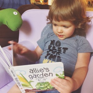 Hello, friends! Today, we read Allie’s Garden, illustrated by Marla Osborn and written by Sabra Chebby, an adorable little book about fresh veggies and garden critters.