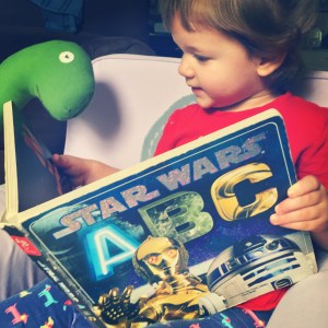 Hello, friends! Today’s book is Star Wars ABC by Scholastic Inc., an oversized board book that takes an alphabetic look at the characters and things of a galaxy far, far away (and yes, I know this is the third Star Wars book this month, but we’ve been on a bit of a Star Wars kick here at the Baby Bookworm household).