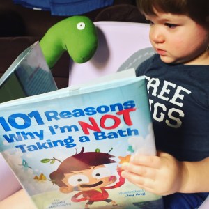 Is it bathtime? No way! The little boy addressing the reader will NOT be taking a bath today, and he has plenty of reasons why; 101, in fact. He’s not even dirty, for one. Monsters live in the tub drain, for another (okay, he didn’t see them, but he HEARD them). None of his friends are taking baths, and he is allergic to soap. And on it goes, with the little boy exploring every avenue of negotiation to talk his way out of bathtime. But when he finally does get into his bubble bath, he realizes it may not be so bad… until it’s time to get out.