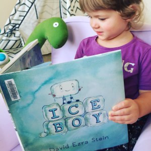 Hello, friends! Today’s book is Ice Boy by David Ezra Stein, the wild adventure of a little ice cube’s journey through the different states of matter.