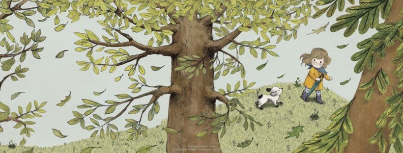 The story opens on a little girl who informs the reader that she knows some secrets, the kind that only a child can discover by exploring the world around them. First, she knows that secrets should be whispered, and that whispers hide in trees, and that trees make good umbrellas. And on it goes as the girl, her friend and her dog enjoy the simple magic of a blustery autumn day in her own backyard, sharing little secrets, and discovering new ones to keep.