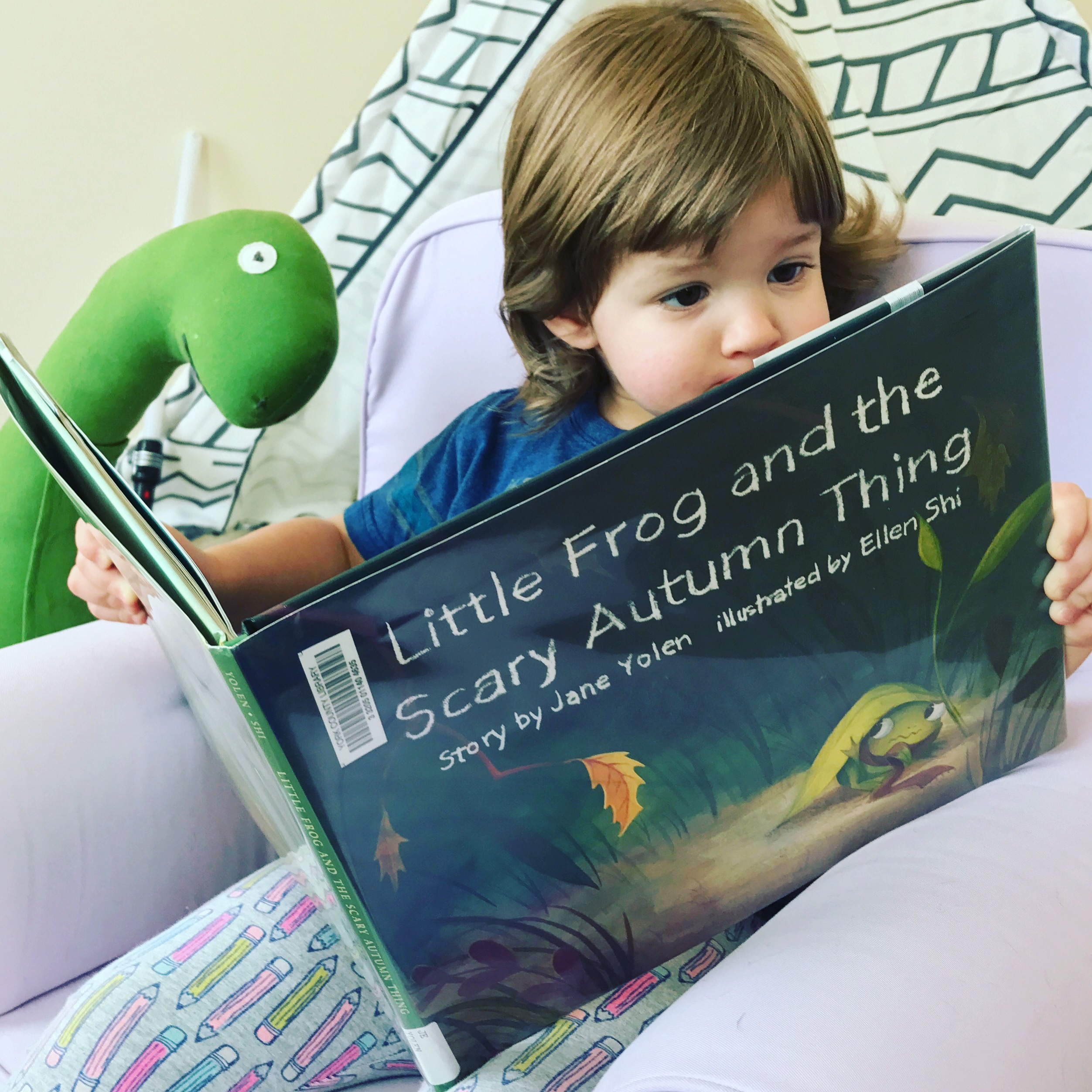 Hello, friends! Today’s book is Little Frog And The Scary Autumn Thing, written by Jane Yolen and illustrated by Ellen Shi, a wonderful tale that uses the change of seasons as a metaphor for how to handle changes in our lives.