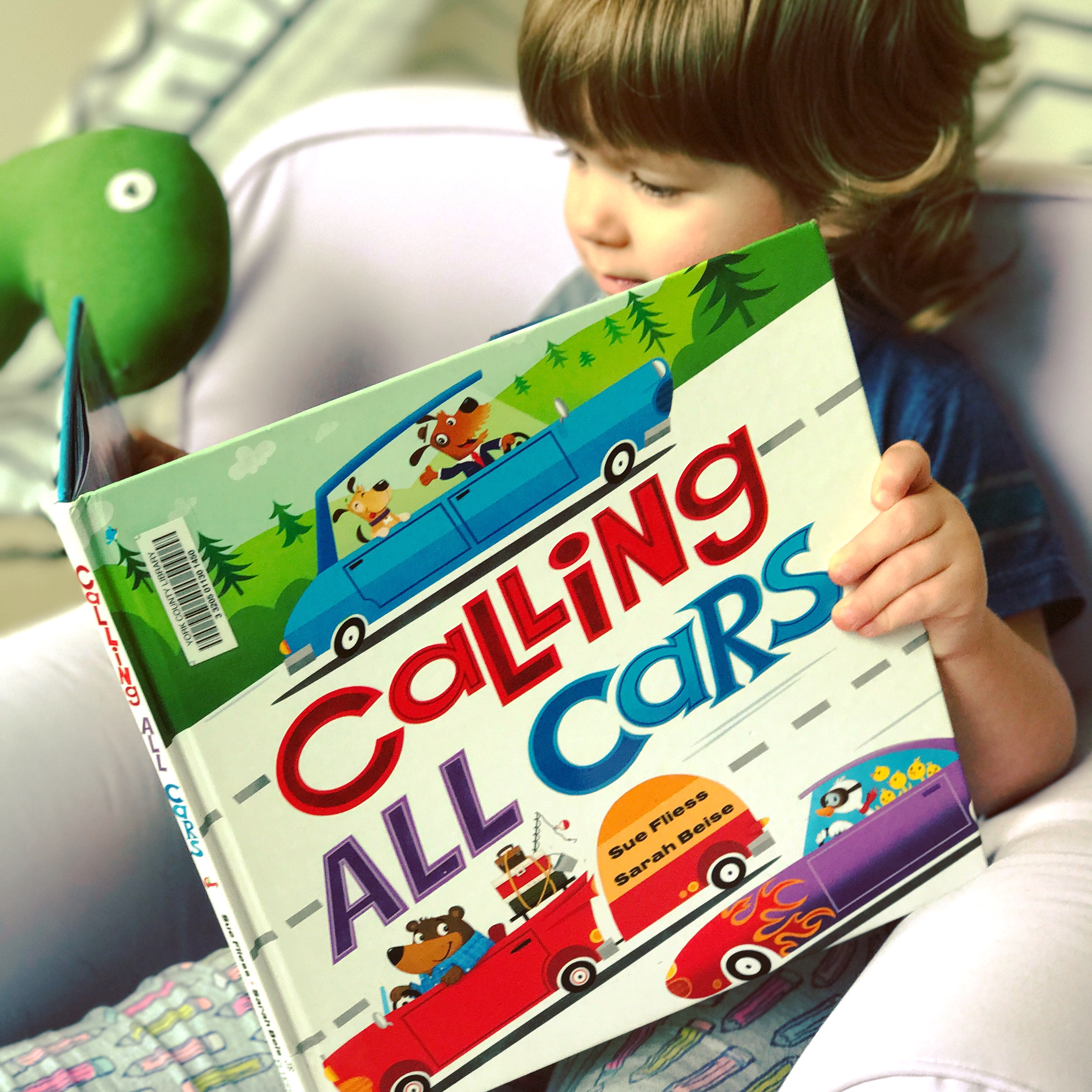 Hello, friends! Today’s review is Calling All Cars by Sue Fliess and Sarah Beise, a simple and colorful book of cars for little ones.