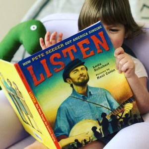 Hello, friends! Our book today is Listen: How Pete Seeger Got America Singing, written by Leda Schubert and illustrated by Raúl Colón, the story of the noted folk singer and activist.