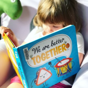 What a great board book for little readers! From the adorable illustrations – doodles over photographs of each object or item – to the fun and easy-to-read rhymes, this was a delight for JJ, and great for object identification. And while there’s not as much a story as there is a concept, it’s a great one: it teaches children how things can come together to make something even better, and subtly shows that, with the right mix and bit of teamwork, diverse groups often have the best finished products. It’s a smart lesson taught in a very clever and entertaining way. We loved this one, and highly recommend it. Baby Bookworm approved!