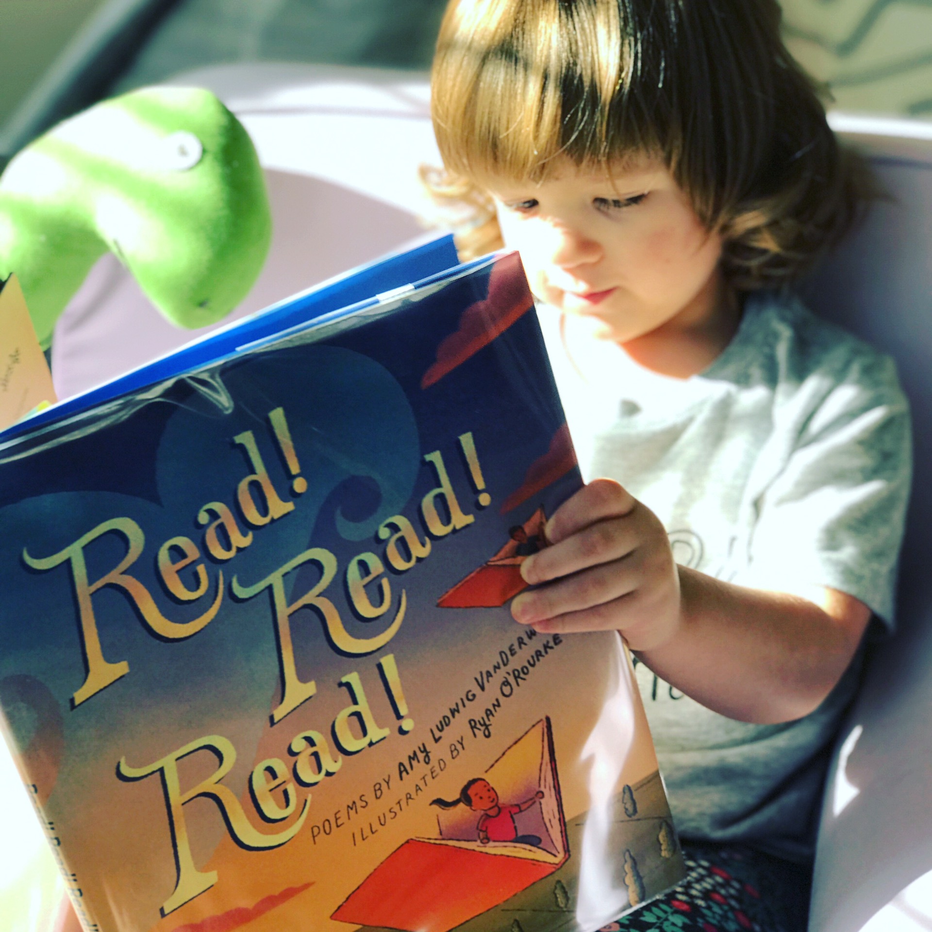 Hello, friends! Today’s book is Read! Read! Read!, poems written by Amy Ludwig VanDerwater and illustrated Ryan O’Rourke, a joyful and moving ode to books and reading for little ones.