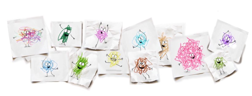 Once there was a little scribble, a unique little fellow whose lines wobbled and wiggled. He could be any color or size that he pleased, and he liked that about himself – it was always fun to be something different and colorful. One day, Scribble comes across a house drawn in black lines, and asks to play. The house is grumpy and dismissive, turning Scribble away and making rude comments about his colors and his haphazard shape. Later, Scribble finds a sun and some clouds that are similarly monochrome. He asks to play with them, and they are equally dismissive. Isn’t there anyone who can appreciate Scribble’s uniqueness?