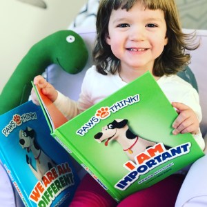 In We Are All Different, Weaver introduces himself as a playful spotted dog with a loving family. At the dog park, he muses that none of the other dogs look just like him: they are all different colors, shapes and/or sizes. Weaver likes this though, because when all those differences mix together, it makes for a fun day of play with friends. In I Am Important, Weaver notices that many other pups have important jobs, like police dogs or service animals. He wonders if he is important or not, and decides to leave home to find out. As he walks around town however, he begins seeing flyers with his pictures on him – he family thinks he’s run away. Weaver returns home and realizes that everyone is important, because everyone has someone that they are important to.
