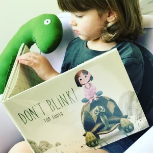 Hello, friends! Our book today is Don’t Blink! by Tom Booth, a charming little tale of an epic staring contest.