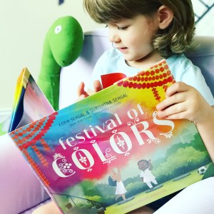 Lovely! What a fascinating and fun way to introduce Holi to those who are unfamiliar, and celebrate it for those who are. I had seen Holi celebrations before, and enjoyed learning about the origin of the colorful powders used, as well as the meaning of the festival. JJ adored the colors, flowers, and fantastic use of onomatopoeia. The illustrations are everything you could hope, featuring a Hindi cast in a wide range of skin tones, ages, and sizes and of course, plenty of bright, eye-catching color. The length was perfect, and JJ loved it. A wonderful way to learn about a beautiful holiday, and it’s Baby Bookworm approved!