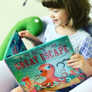 Hilarious and adorable. Loosely based on a real incident at a New Zealand aquarium, Inky’s story has been anthropomorphized here. This gives both octopuses voices and motivations for the infamous escape, ones that are humorous and engaging for little ones. There’s a small amount of description of the incredible biological features that allow octopuses to be such master escape artists – though I wish there had been more, to be honest – and the ending introduces a bit of fantasy, but is still heartwarming and sweet. The bright, energetic illustrations are filled with adorable sea creatures that JJ loved, the length was good, and overall this was just an enjoyable read. We can definitely recommend this for any fellow fans of marine life, and it’s Baby Bookworm approved!