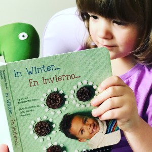 Lovely! Despite this being the last in the series, this is the first of the Seasons book we’ve gotten a chance to look at, and it’s absolutely charming. The brightly-composed photographs and their endearing child star are engaging, and the exploration of the seasonal offerings of winter – plus bilingual text that encourages learning for readers of all skill levels in both languages – offers a wealth of educational and creative-thinking opportunities. I did see a note in another review that the critic noticed a Spanish-language grammatical error; I wouldn’t know as I am not fluent, but it is perhaps worth mentioning. But for my money, this was a thoroughly enjoyable book that JJ and I had fun sharing, and makes me want to check out the rest of the series. Good length for storytime, informational and entertaining, and JJ and I loved it! Baby Bookworm approved!