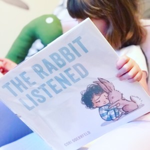 Hello, friends! Our book today is The Rabbit Listened by Cori Doerrfeld, a simple yet touching look at how we process grief – or can help others who are grieving – during difficult times.