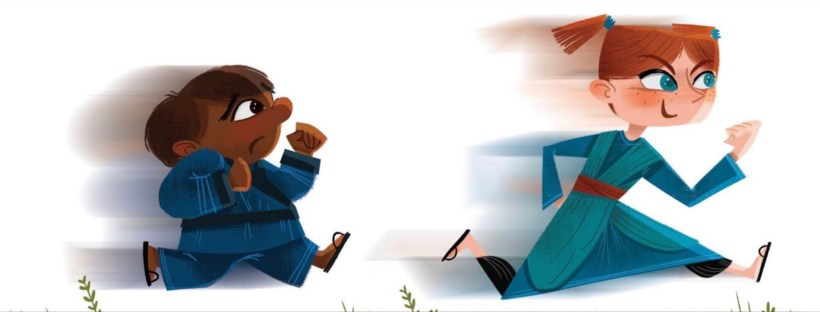 Oh, I wanted to like this more than I did. Fliess’s stories are typically fun to read, full of bouncy rhymes and creative plot lines – and in truth, that applies here. The text is fun to read, and the opening training montage is pretty standard for the “so you want to be a ninja” genre. The issues arise in the visuals, specifically some questionable choices that are made regarding be use of weapons and violence. Children are seen using actual weapons: throwing stars, swords, nunchucks, etc. In fact, during the climatic battle, the rival children face off using these weapons, as well as implied martial arts blows and kicks, ending in the central character pinning another children down, BY THE NECK, with her nunchucks. It’s unsettling, and not the best message to send kids about conflict resolution. Making it worse is something other reviewers have also pointed out: while the cast of children is commendably diverse in skintone and body type, it is the sole white child that is the most talented, the most brave, and the eventual savior of the day, ending the story atop a rock, holding the Shadow Blade (again, a REAL SWORD that was used in a fight against other children) aloft as the various children of color pay deference beneath her. It does not make for a comfortable visual. And while I acknowledge that any book about ninjas will probably include some reference to fighting, I can think of a few excellent ones that do not then devolve into armed child-on-child violence. Not for us.