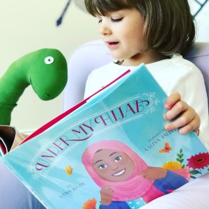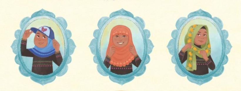 A young girl considers the women in her life who wear hijab – her grandmother, for instance, carefully folds her hijab to keep it out of the way while she works at a baker; at home, she wears her graying hair in a neat bun while they bake together. The girl loves the way her mother’s cheerful pink hijab contrasts her white doctor coat; at home, her long hair is braided while tending her garden. For each hijabi, the girl notes the various ways they style it to reflect their personalities – towering high with a homemade pin for her artist aunt, practical under a sun hat for her camp counselor, trendy and fashionable for her teen sister. She thinks on how she loves and admires each woman, and when she is old enough, she’ll choose to wear hijab as well – inspired by them, and as a reflection of the unique person she is under her hijab.