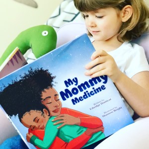 When the unnamed protagonist – an adorable little girl with bright eyes and a high poof of natural hair – is feeling sick or sad, her Mommy always knows just the right medicine. Sometimes it’s a silly kiss as loud as Mardi Gras horns, or a cup of tea (or hot chocolate!) to soothe sore throats. Maybe it’s a song at bedtime, or a prayer at naptime, or a cuddle on the couch while watching movies. Maybe it’s playing a game of Uno, or a piggyback ride, or even just sitting quietly together and enjoying the stars on the ceiling. No matter what the remedy, Mommy always seems to know just what the little girl needs to feel better.