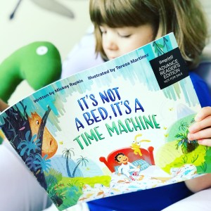 Hello, friends! Our book today is It’s Not A Bed, It’s A Time Machine, written by Mickey Rapkin and illustrated by Teresa Martinez, a delightful adventure that encourages little ones to be brave at bedtime.