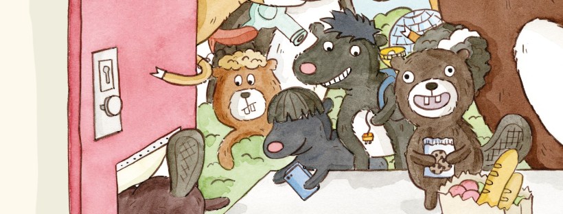 Soon after a family pulls away from their home, their car loaded up with camping gear and supplies, a group of animals peeks out from the bushes and ventures into the empty house. The Bears, Beavers, Deer, and many more woodland families join in this annual tradition of living the “simple” life in the great indoors. The Bears cozy up in front of the couch, the beavers take command of the kitchen, the deer bring the party, and all the families marvel at the “creature comforts” of their home away from home. But soon, the inconveniences of indoor life begin to grow frustrating, and the indoor campers are ready to head back to normal life in the woods – wonder what their human hosts will think of the mess they left behind?