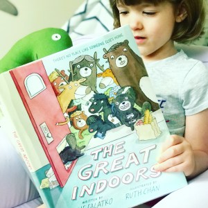 Hello, friends! Our book today is The Great Indoors, written by Julie Falatko and illustrated by Ruth Chan, a cute tale of woodland creatures getting away from it all.