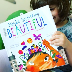 Hello, friends! Our book today is Maybe Something Beautiful: How Art Transformed A Neighborhood, written by F. Isabel Campoy and Theresa Howell,and illustrated by Rafael López.