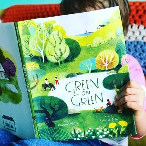 Hello, friends! Our book today is Green On Green, written by Dianne White and illustrated by Felicita Sala, a lovely meditation on color, the seasons, and family.