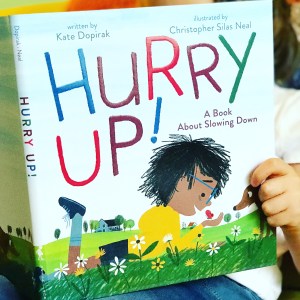 Hello, friends! Our book today is Hurry Up!: A Book About Slowing Down, written by Kate Dopirak and illustrated by Christopher Silas Neal, a story of taking one’s time once in a while.