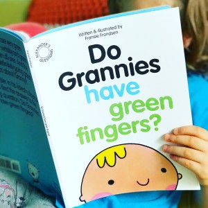 First in the creator’s Alexander’s Questions series, this cheerfully silly little tale follows young Alexander as he questions some of the colorful figures of speech the grownups around him employ. When his mom notes that Alexander’s Granny, who has just won yet another gardening competition, has “green fingers”, he is puzzled. His mom often has green fingerNAILs, but she likes to change her polish color pretty frequently. And his dad, seeing a plethora of recycling bins outside, notes that the neighbor is “going green” – does this mean the neighbor has green fingers too? Curiously and contemplatively observing these turns of phrase, Alexander decides to conduct some surveillance and find out once and for all: do Grannies have green fingers?