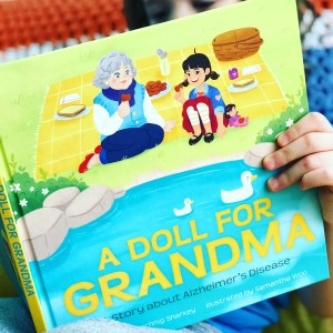 Hello, friends! Our book today is A Doll For Grandma: A Story about Alzheimer’s Disease, written by Paulette Bochnig Sharkey and illustrated by Samantha Woo.