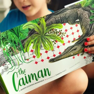 Hello, friends! Our book today is The Caiman, written by María Eugenia Manrique, illustrated by Ramón París and translated by Amy Brill, a touching true story of a unique friendship.