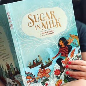 Hello, friends! Our book today is Sugar in Milk, written by Thrity Umrigar and illustrated by Khoa Le, a gorgeous and timeless tale of kindness and acceptance.
