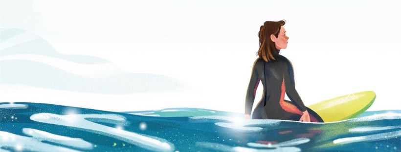 Hello, friends! Our book today is Sarah and the Big Wave: The True Story of the First Woman to Surf Mavericks, written by Bonnie Tsui and illustrated by Sophie Diao, an exhilarating look at the life of big wave surfer Sarah Gerhardt.