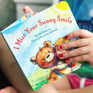 Hello, friends! Our book today is I Miss Your Sunny Smile, written by Deb Adamson and illustrated by Anne Zimanski, a tender board book about finding your way out of a bad mood.