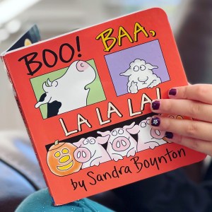 Hello, friends! Our book today is Boo! Baa, La La La! by Sandra Boynton, a Halloween companion board book to Boynton’s classic Moo, Baa, La La La!