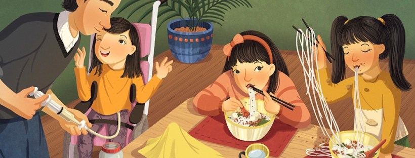 Beautiful. This simple, lovely tale of family togetherness is made all the more impactful by its protagonist, Elsie, who is nonverbal and uses a wheelchair. Elsie’s disability is never treated as a spectacle, instead presenting aspects of daily life for her special needs matter-of-factly and without fanfare. She uses a communication book as well as a feeding tube, has loving and affectionate relationships with her able-bodied sisters and parents, and expresses her complex inner thoughts to the audience through italics in the text. This approach marvelously creates a special-needs main character that readers both disabled and able-bodied can connect and empathize with without exploiting her disability for dramatic effect. Chen’s artwork is tender, expressive, and colorful, though suffers the slightly flat aspect of much digital illustration. The length is perfect for an elementary-aged storytime, and JJ absolutely loved seeing someone else who uses visual aids to help with speech. At its heart, this is a simple family story, but its unique main character elevates it to a must-read. We loved it, and it’s Baby Bookworm approved!