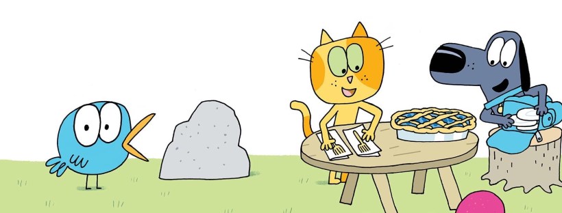 In both books, the reader is introduced to Really Bird, an outspoken little bird so named for their rather BIG emotions; Really Bird doesn’t just get happy or sad or thirsty, they get REALLY happy or REALLY sad or REALLY thirsty. In Be First!, Really Bird decides that they are really tired of being last, and want to act as leader that day for their trio of friends, which includes Cat and Pup. All goes well at first, but unfortunately, Really Bird leads their pals into a precarious spot, and the trio must work out how to get home. In Bigger Piece!, the three friends share a picnic pie, but have differing opinions on who should get the largest and best piece. Really Bird is really hungry, but since they’re the smallest, the other two don’t think the bird should get the biggest piece. The friends will have to decide what they think is fair for everyone, or no one will be able to enjoy their picnic.