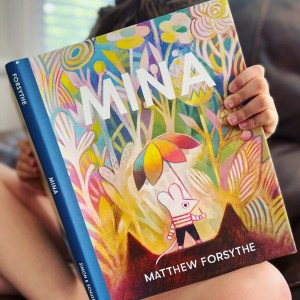 Hello, friends! Our book today is Mina by Matthew Forsythe, a hilariously off-kilter spiritual sequel to the author-illustrator’s previous title, Pokko and the Drum.
