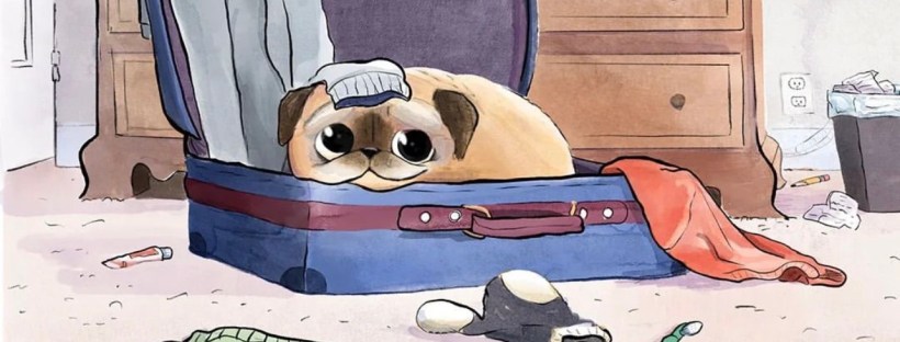Noodle is a sweet, silly, and stubborn elderly pug with a ton of personality. He loves his life with his human, Jonathan, and all the things they do together. Noodle loves to go for walks, sit outside and bark at neighbors, and especially munch on snacks (chicken is his favorite, but he even enjoys broccoli). But one day, when Jonathan calls Noodle for their walk, Noodle doesn’t seem to want to get out of bed. Even when Jonathan picks him up and sets him on his paws, Noodle only plops back down (“It’s like he doesn’t have bones!” Jonathan muses). Noodle isn’t sick or hurt – and he’s still got his appetite – so Jonathan asks if he would just like to stay home and cuddle instead. Noodle replies with a definitive “yes” in the form of a sneeze, and the two develop a new understanding – oftentimes it’s fun to go out and have a day full of excitement, but sometimes, we all need a “No Bones Day” to rest and recharge.