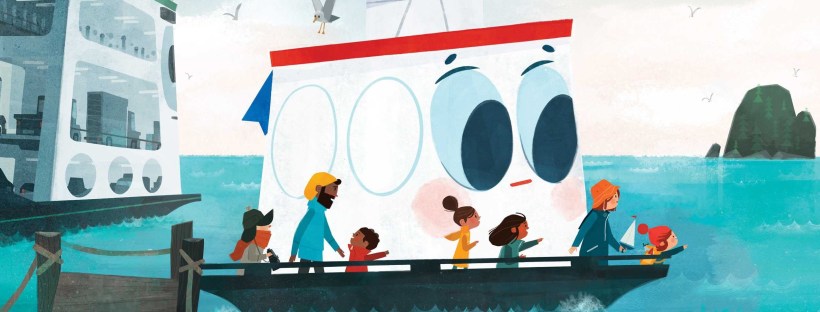 Little Ferry, a hardworking seacraft in “a place with more water than land” has humble strengths: she is patient, quiet, careful, and punctual. While that makes her very good at her job, she can’t help but envy the other boats, whom her passengers always cheer and whoop for. They love fearless Tugboat, thundery Speedboat, and graceful Sailboat, but no one pays much mind to quiet and dependable Ferry. She tries to emulate her water-bound companions, but Ferry’s not really made to be anything other than she is – but how can she make a splash if she was built to be slow and steady?