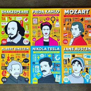 Hello, friends! We’re bringing you a special weekend review and taking a look at the latest titles in Button Books’ Great Lives In Graphics series, which introduces notable figures from history in a kid-friendly, infographic-style format.