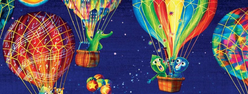 Blue Baboon, out for a moonlight stroll in the park, happens upon a trio of musicians and a open bassoon. Wanting to join the musical merriment, the baboon picks up the instrument and starts to play… POORLY. The musicians gently request that she return the baboon, just as a storm (monsoon) rolls in. Finding shelter from the rain at a hot-air balloon field, baboon is gifted the bassoon by the musicians before flying away to play her cacophonous tunes somewhere she won’t bother anyone else. However, she may find that there are new friends who can appreciate her unique musical style… and old ones who decide her company is worth a little discord.