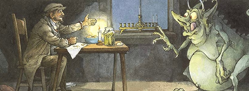Hello friends, and happy first night of Hanukkah! In honor of the occasion, our book today is the special 25th Anniversary edition of Hershel and the Hanukkah Goblins, written by Eric Kimmel and illustrated by Trina Schart Hyman.